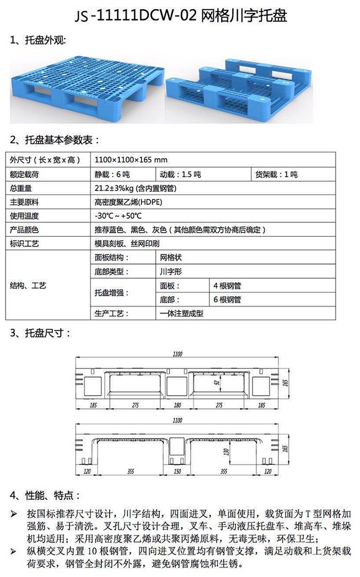 2、塑料托盤產(chǎn)品尺寸誤差正負(fù)2%,重量誤差正負(fù)3%,均屬于企業(yè)標(biāo)準(zhǔn)允許的范圍。