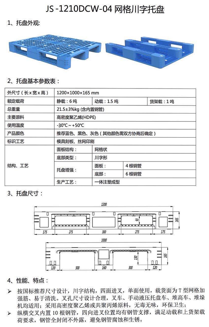 2、塑料托盤產(chǎn)品尺寸誤差正負(fù)2%,重量誤差正負(fù)3%,均屬于企業(yè)標(biāo)準(zhǔn)允許的范圍。