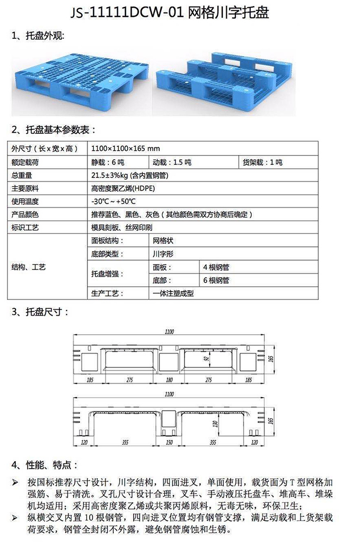 4、所有塑料托盤產(chǎn)品均可按照客戶要求加工成防靜電制品(見技術(shù)中心)。